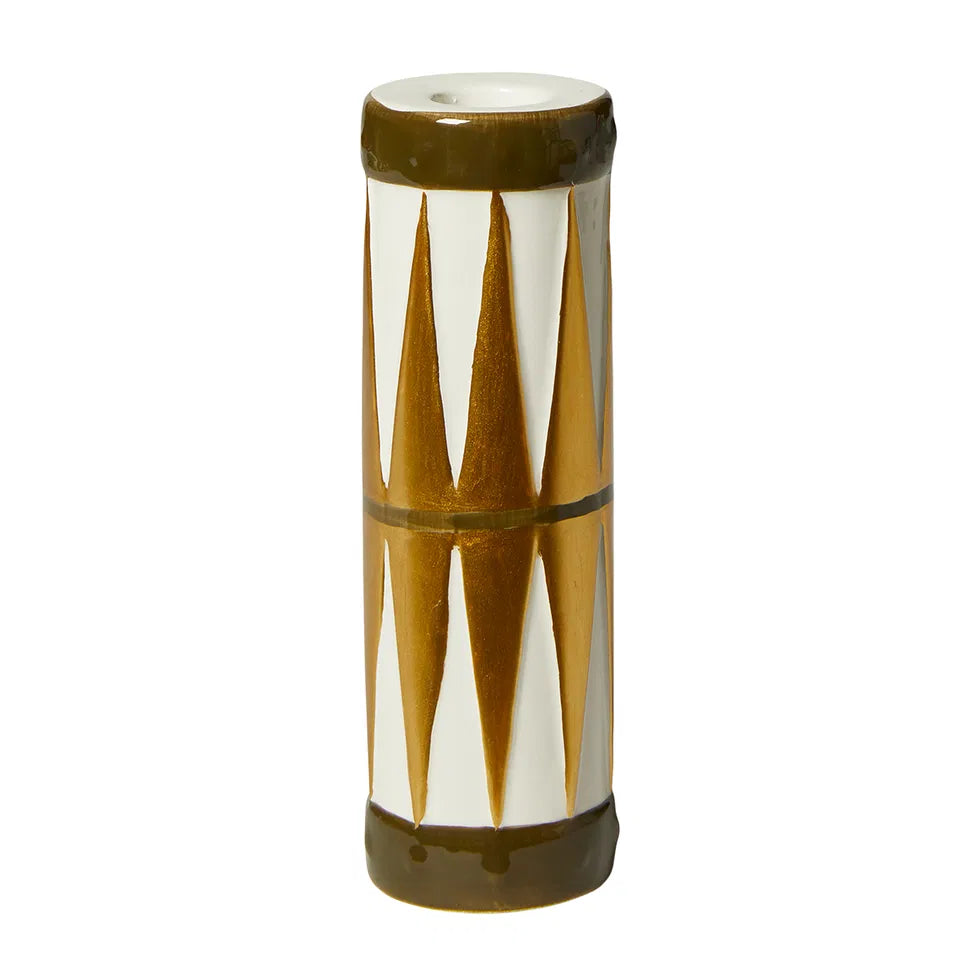 En tromme lavet i keramik. Passer perfekt til et stagelys eller man kan komme en lille gren i og bruge den som vase. Passer perfekt ind sammen med vores keramik vaser lavet af julemænd, snemænd, juletræ'er, m.m.